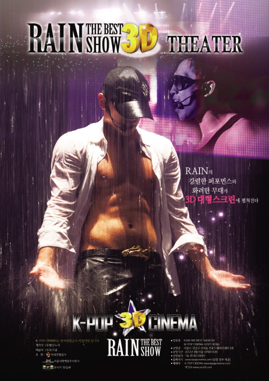 오는 15일 개봉 예정인 '레인 더 베스트 쇼 3D'(RAIN THE BEST SHOW 3D)는 2시간 30분 분량의 비의 공연 실황을 1시간 40분의 하이라이트로 압축해 3D 입체 영화로 제작한 버전이다. 무대 위 비의 모습과 비의 인터뷰 영상 등이 담길 예정이다. 입대 후 비를 보지 못했던 팬들에겐 비의 화려한 퍼포먼스를 다시 볼 수 있는 기회가 될 것으로 보인다.
