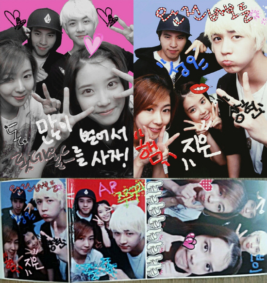 가수 아이유가 절친들과 찍은 스티커 사진을 공개했다.