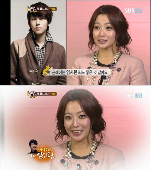 지난 15일 방송된 SBS '한밤의 TV연예'(이하 한밤)에서는 새 월화 드라마 '신의'의 여주인공 김희선이 인터뷰 도중 '가장 눈이 가는 아이돌 가수'로 제국의아이들의 시완을 지목했다. 이어 김희선은 즉석에서 마련된 영상 편지 코너에서 "시완씨 안녕하세요? 너무 잘 보고 있어요. '후유증'노래도 제가 다 따라 부르고 있어요. 좋은 모습 보여줘서 고맙고 앞으로도 좋은 모습 더 많이 보여주세요"라고 전하며 시완의 열혈한 '누나 팬' 임을 입증했다.