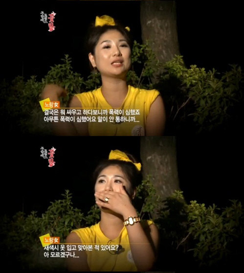 노랑녀는 "시아버지 시아머니 앞에서 맞았다. 팔은 안으로 굽었다. 힘들었다. 근데 나는 매달렸다. 끝까지 이혼은 싫다고 했다. 근데 어쩌겠나. 자기 소원이 이혼이라는데"라고 말했다.