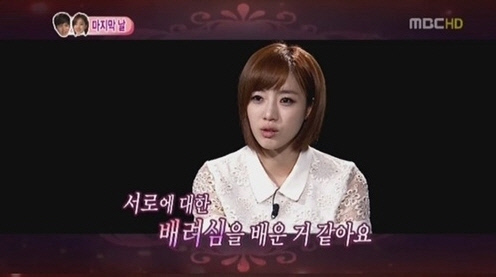 은정은 "서로에 대한 배려심을 배웠다. 고마워할 줄도 알고 미안해할 줄도 알게 됐다. 헤어지게 돼 서운하고 슬프다"라고 소감을 밝혔다.