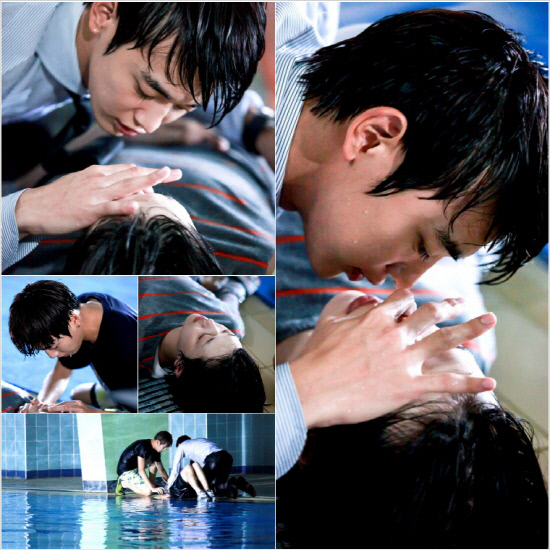 설리와 최민호의 인공호흡 키스 장면은 지난 26일 경기도 수원의 한 수영장에서 1시간 동안 진행됐다. 평소 찰떡궁합을 과시하고 있는 설리와 최민호는 이날 역시 환상의 연기 호흡을 선보이며 NG없는 완벽한 키스신을 완성했다는 후문.