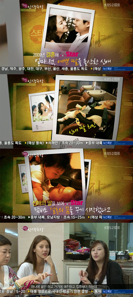 또한 신애의 딸 희민 양 사진도 방송에서 처음으로 공개돼 눈길을 끌었다. 희민 양은 엄마를 빼닮은 깜찍한 미모를 자랑해 시선을 모았다.