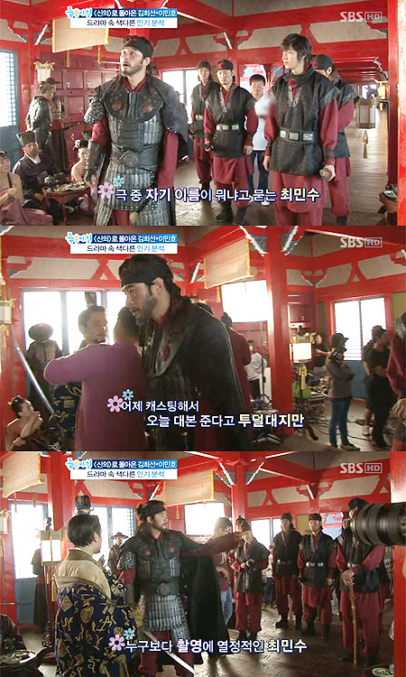 촬영에 앞서 최민수는 대본을 유심히 살펴보다 "극 중 내 이름이 뭐냐"며 스태프에게 질문을 했다. 이어 "아니 무슨 어제 캐스팅해서 오늘 대본 주는 곳이 어딨냐"며 불만을 토로했다.