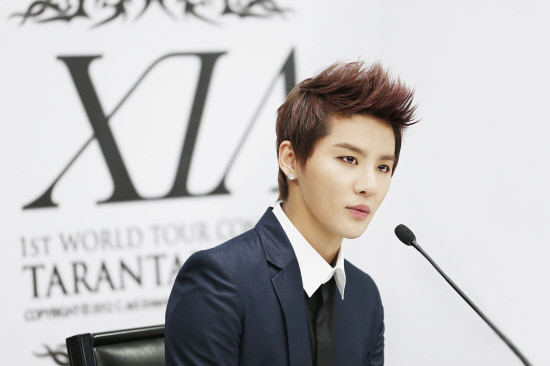 29일(현지시각) 뉴욕에서 열린 기자회견에 참석한 김준수. 김준수는 "주변의 만류에도 불구하고 각오를 다지기 위해 헤어 컬러를 자주 바꿨다"고 밝혔다. 사진제공=씨제스 엔터테인먼트