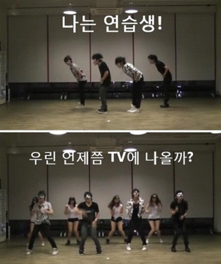 최근 온라인을 중심으로 싸이 '강남스타일'을 패러디한 '강남 연습생 스타일' 영상이 등장해 화제를 모았다. 영상에는 가면을 쓴 4명의 남성들이 '땀에 젖은 티 한 장 입어도 간지가 나는 남자, 런치타임 햄버거 먹는 남자' '우린 언제쯤 TV에 나올까'라고 외치며 '말춤'을 추는 모습이 담겼다.