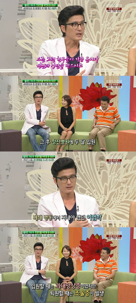가수 이범학이 과대망상증으로 정신병원에 입원한 사실을 고백했다.