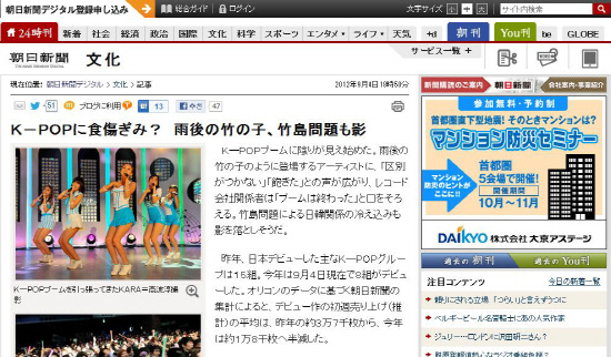 그러면서 K-POP이 시들해진 근거도 나열했다. 지난해 일본에 진출한 K-POP 그룹이 15개 팀이었지만 올해는 8개팀에 그쳤다는 것. 여기에 오리콘 자료를 토대로 추정한 K-POP 가수들의 일본 데뷔 앨범 평균 판매량도 지난해에는 3만7000장을 기록했지만 올해는 1만8000장으로 줄었다.