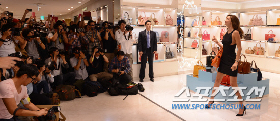 세계적인 모델 미란다 커가 10일 오후 서울 소공동 롯데백화점에서 열린 가방 브랜드 '사만사 타바사'의 한국 론칭 1주년 행사에 참석해 포즈를 취하고 있다.