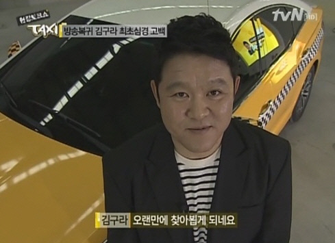 13일 방송된 tvN '현장토크쇼-택시(이하 택시)'에 새 MC로 발탁된 김구라는 일일 스페셜 MC로 투입된 김성주에게 "김성주 씨 앞에서 긴장을 잘 안하는데 긴장이 된다"고 인사를 건네며 말문을 열었다.