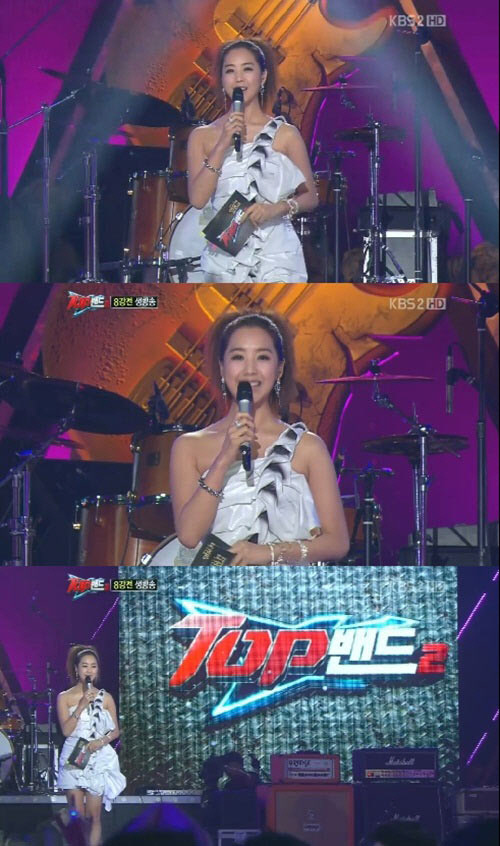 지난 15일 방송된 KBS2 밴드 서바이벌 'TOP밴드2'에서는 생방송으로 8강전이 펼쳐졌다.이날 이지애 아나운서는 올려 묶은 머리에 화려한 헤어밴드와 귀걸이, 메이크업으로 아름다운 미모를 과시했다.