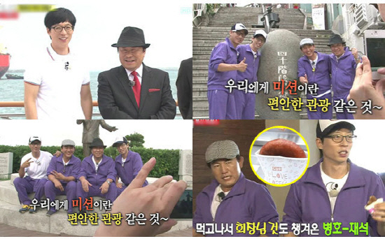 부산의 명물 음식인 '씨앗호떡'과 '단팥죽'의 맛이 인상 깊었던지, 다 먹지 않고 가져가려 하거나.. 미션 중 남게 되는 음식을 협조를 구해 선배에게 가져가려는 유재석의 마음 씀씀이는 아름다운 모습일 수밖에 없었다.
