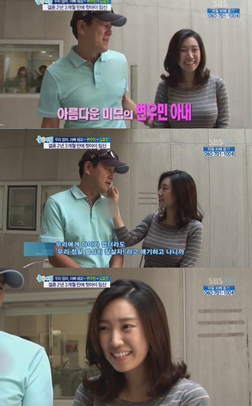 변우민은 아내를 공개하며 "말도 많고 탈도 많았던 나의 20세 연하 아내다. 아내가 임신 5개월하고도 2주차다"라며 아내와 함께 초음파 검사 후 "아기가 건강하단 얘길 들어 다행이다. 오늘은 아기 얼굴을 보고 싶다기보다 건강하단 소식을 듣고 싶었다"고 첫 아이를 갖게 된 벅찬 심경을 전했다. <스포츠조선닷컴>