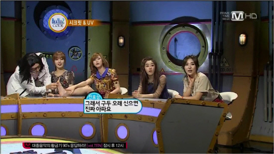 지난 24일 각각 '포이즌'과 '그 여자랑 살래요'로 많은 사랑을 받고 있는 시크릿과 유브이(UV)가 '비틀즈 코드 시즌 2'에 출연해 평행이론을 펼쳤다. 이전에 윤종신과 함께 '비틀즈 코드 시즌 1'에서 진행을 맡았던 유세윤은 특유의 거침없는 입담으로 웃음을 유도했으며 시크릿도 1년 만의 컴백에 멤버 전원이 오랜만에 예능 프로그램에 출연해 솔직한 모습을 선보였다.