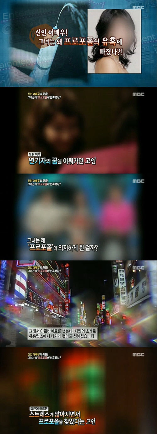 하지만 신인여배우의 삶은 그리 만만치 않았고, 집안 형편이 어렵지는 않았지만 자취생활을 하다보니까 생활비가 필요해져 지인의 소개로 유흥업소에 나가게 됐다. 그리고 유흥업소 쪽에 나가다 보니 스트레스가 많아지면서 결국 프로포폴에 손을 대게 된 것으로 전해졌다.