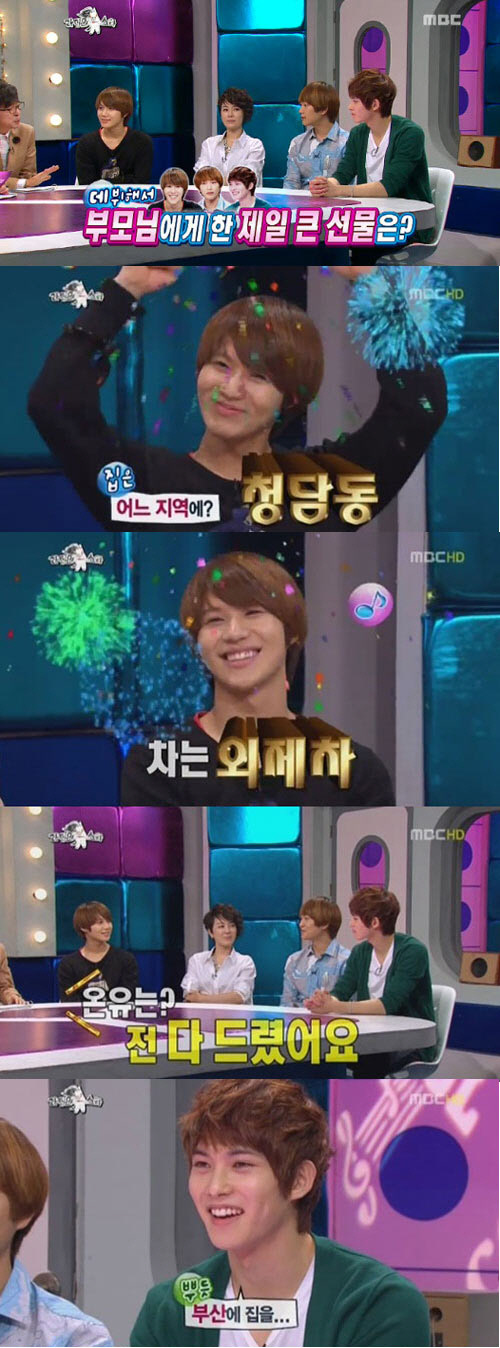 이에 태민은 "부모님께 집과 차를 해드렸다. 집은 청담동에 마련해 드리고, 차는 외제차로 해드렸다"고 밝혀 MC들을 놀라게 만들었다.