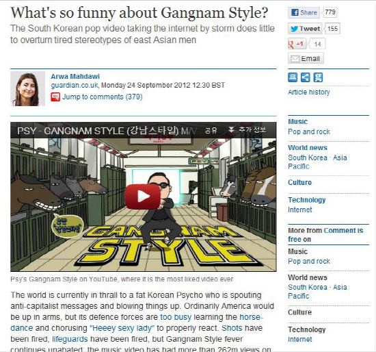 영국 일간지 가디언이 싸이의 '강남스타일'에 대해 혹평을 쏟아냈다.