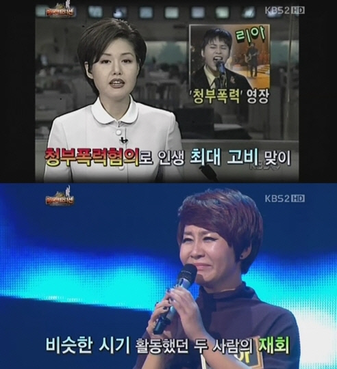 28일 방송된 KBS2 '내 생애 마지막 오디션'에 출연한 리아는 "청부폭력 혐의로 인생 최대의 고비를 맞았다. 그 사건 이후 점점 날 찾는 횟수가 줄어들었다. 가수를 하지 말아야 될 것 같았고, 정신적 충격이 너무 커서 밖에 나가지도 못했다. 무혐의 판정이 났지만 이미 만신창이였다"고 밝혔다. 이어 "결혼 6년 만에 이혼했다. 날 구제해 준 건 등산이었다. 히말라야 등산을 하며 음악으로 못 풀었던 열정을 풀어냈다. 지금도 눈물날 것 같다. 회사랑 헤어지고 혼자 해보려고 했는데 무대가 주어지지 않았다. 노래를 계속 하고 싶었다. 멀리서 바라보고만 있을 수 없었다. 기다리지 않고 용기 있게 다가가 사람들을 만나고 싶었다. 숨어있고 싶지 않았다"고 전했다.
