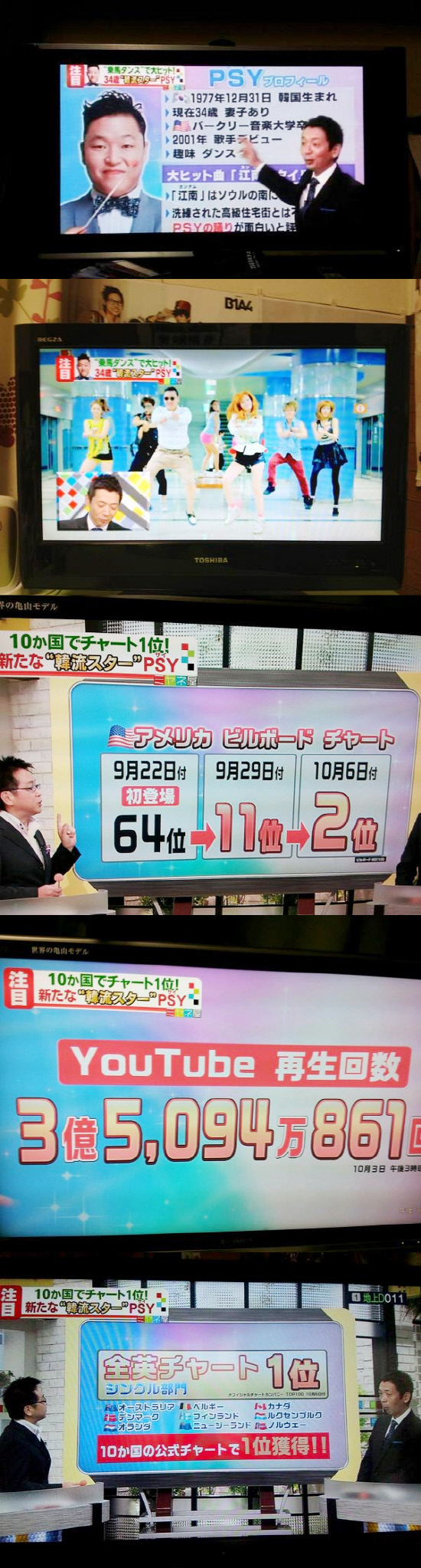 MC인 미야네 세이지는 "싸이가 영국 싱글차트를 포함해 세계 주요 10개국 공식 차트에서 1위"를 차지했다"면서 "진정한 월드 스타로 거듭났다"고 감탄을 금치 못했다.