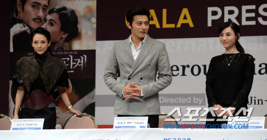 5일 오후 부산 신세계 센텀시티 문화홀에선 영화 '위험한 관계'의 제17회 부산국제영화제 공식 기자회견이 열렸다. 장쯔이는 "장동건을 처음 봤던 건 예전에 LA에서 영화를 같이 하기 위해 미팅을 했을 때였다. 영화를 준비하는 과정에서 장동건이 크게 다쳐서 결국 그 영화를 함께 찍진 못했다. 하지만 그때 느낀 점은 정말 좋은 배우고 프로페셔널한 배우란 것이다"라고 밝혔다.