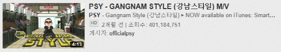 가수 싸이가 유튜브 4억뷰 신화를 썼다.