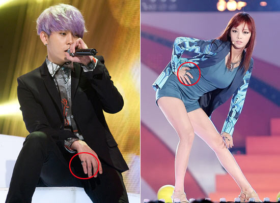 '아이돌 공식연인' 카라 멤버 구하라와 비스트 멤버 용준형의 '커플반지'가 포착됐다.
