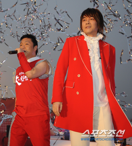 김장훈은 10일 오후 서울의 한 호텔에서 열린 외제차 행사장에서 축하공연을 하고 있는 싸이를 찾아가 먼저 화해의 손을 내밀었다. 두 사람은 서로에게 미안한 마음을 전하며 눈시울을 붉혔고, 싸이의 노래 '낙원'의 무대를 함께 꾸몄다. 화해의 공연 후 김장훈은 미투데이에서 "흙탕물에서 나와 씻은 느낌"이라는 심정을 전하기도 했다. 김표향 기자 suzak@sportschosun.com