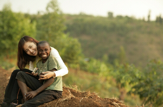 배우 최송현의 아프리카 봉사활동 사진이 화제다.