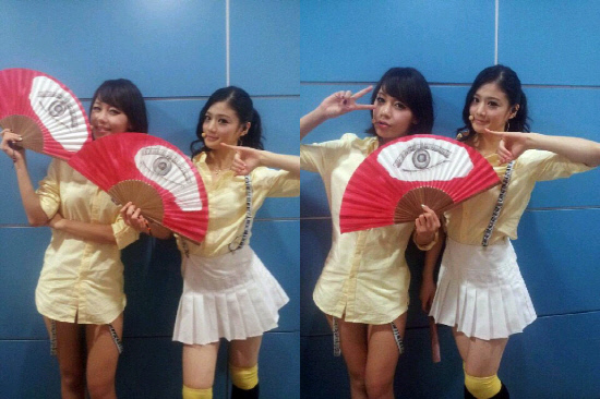 사진 속 쉬즈는 과거 이정현이 히트곡 '와'를 통해 유행시켰던 눈이 그려진 부채를 들고 새끼손가락 마이크 퍼포먼스를 재현하는 포즈를 취하고 있는 가운데 이날 '쇼 음악중심'을 통해 멤버전원이 새끼손가락 마이크 포즈로 무대 엔딩을 장식해 시선을 모았다.