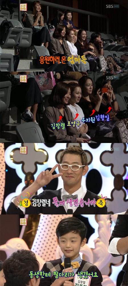 김창렬, 조영구, 우지원, 김형일의 아내는 방청석에 나란히 앉아 아이들과 남편을 응원해 눈길을 끌었다. 그 중 8년 만에 둘째를 가진 김창렬의 아내는 임신 중에도 여전히 우아하면서도 아름다운 미모를 자랑해 시선을 모았다.