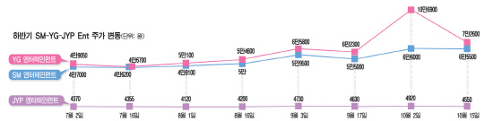 YG엔터테인먼트(이하 YG)와 SM엔터테인먼트(이하 SM)가 모두 들썩들썩한데, 유독 JYP엔터테인먼트(이하 JYP)만 조용하다.