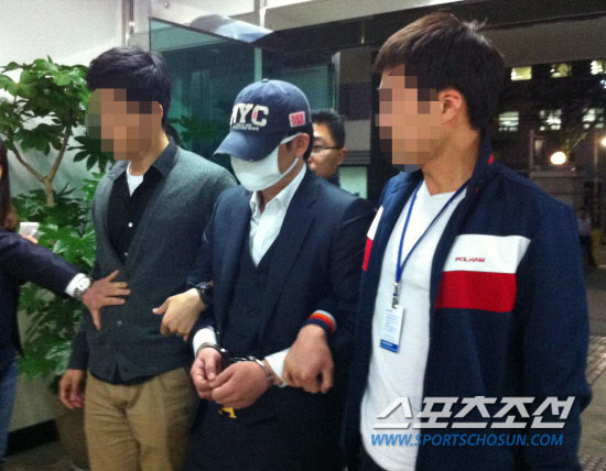 그룹 쿨의 멤버 김성수의 전처 강모씨를 살해한 혐의를 받고 있는 제갈모씨(가운데)가 17일 오후 6시 검거돼 서울 강남경찰서로 이송됐다. 사진=김표향 suzak@sportschosun.com