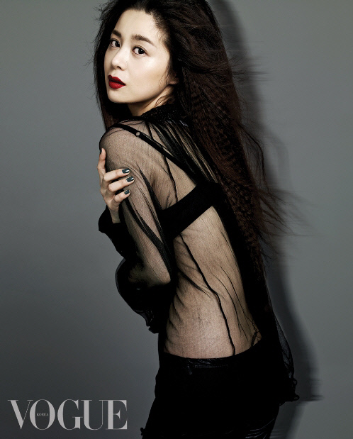 백옥같이 하얀 피부와 조화를 이루는 블랙 시스루 의상과 새빨간 입술, 여기에 유혹적인 자태와 눈빛을 지닌 팜프파탈의 매력을 드러내며 남성들의 마음을 설레게 한다.
