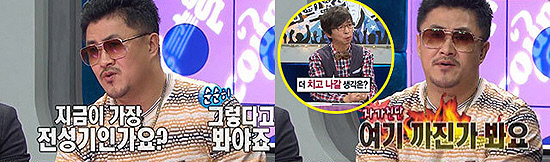 그래서 적당히 포기할 줄 아는 그는 <라디오스타>에 나와서 단 한 번의 기회라면, 원 없이 놀고 가야겠다는 생각에 폭주하는 기관차처럼 열정을 불사르는 모습을 보여 큰 웃음을 주게 된다.