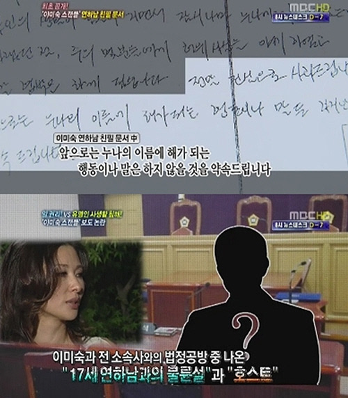 그러나 이 문서 안에는 '부적절한 관계', '호스트' 등의 내용은 없으며, 이미숙 피고 기자는 "편지에는 감사와 사과의 뜻만 적혀있지 그 동안 불거졌던 불법적 내용이 없다. 또한 연하남이 이 편지를 썼다는 것은 이미숙 측으로부터 무엇을 받았을 거라고 생각한다"라고 덧붙였다. <스포츠조선닷컴>