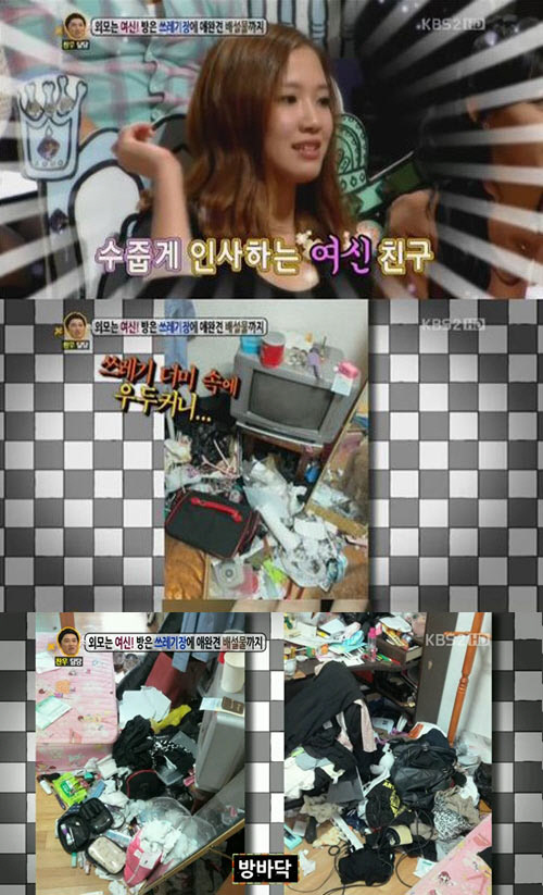 '여신미모'와는 달리 청소와 담쌓고 사는 '쓰레기장녀'가 등장해 관심이 집중 됐다.
