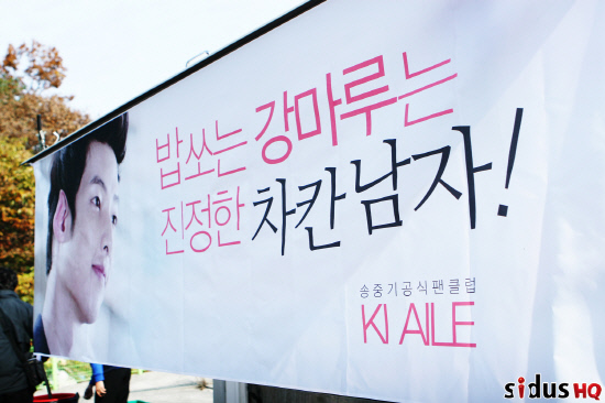 지난 29일 송중기의 공식 팬클럽 '키엘'과 함께 KBS2 수목극 '세상 어디에도 없는 착한남자' 촬영현장에 밥차를 준비, 110인분의 푸짐한 점심 식사를 선사하며 배우들과 스태프들을 감동시켰다.