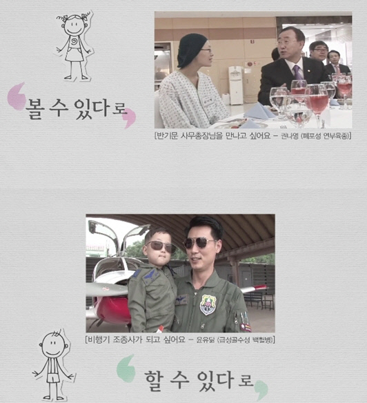 이번 영상에는 '한국메이크어위시재단 설립 10주년 기념 콘서트' 소개와 함께 휠체어를 타고 국토종단을 한 배재국, 꿈에 그리던 반기문 사무총장을 만난 권나영, 비행기 조종사의 꿈을 이룬 윤유닮, 뮤지컬 배우의 꿈을 무대에서 펼친 공나영 어린이 등의 감동적인 사례를 담았다.