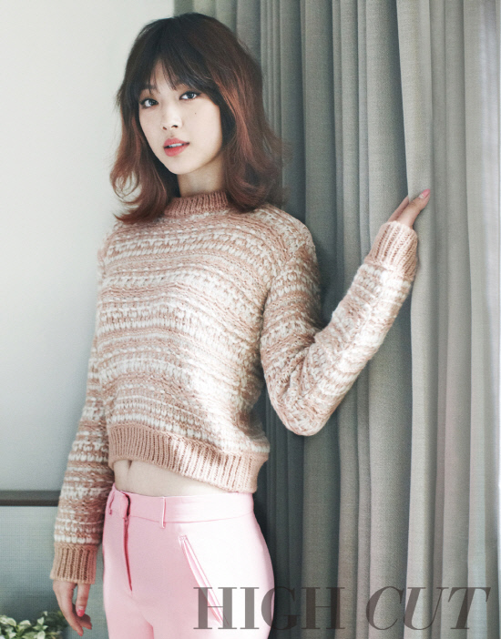 설리는 1일 발간된 스타 스타일 매거진 '하이컷' 화보를 통해 청순한 소녀 컨셉트의 화보를 공개했다. 이번 화보에서 설리는 드라마 '아름다운 그대에게'에서 보여줬던 보이시한 얼굴을 걷어내고 수줍은 듯 부드러운 눈빛과 나른한 포즈로 여성스러운 매력을 내뿜었다. 특히 브라스 파티의 가방을 메고 침대에 엎드린 채로 촬영한 컷에서는 그 동안 숨겨왔던 우윳빛 몸매를 드러내며 남심을 사로잡았다. 또한 배꼽이 살짝 보이는 노출 의상도 과감히 소화하며 성숙한 매력의 화보를 완성했다.