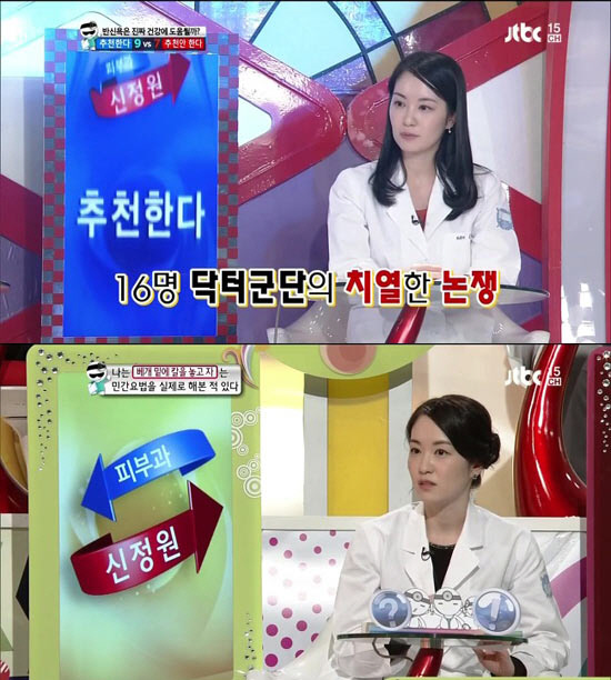 최근 온라인 커뮤니티 게시판에는 JTBC '닥터의 승부'에 닥터군단으로 출연한 서울대 의대 출신 피부과 전문의 신정원 씨의 방송모습을 캡처한 사진이 여러 장 게재됐다.