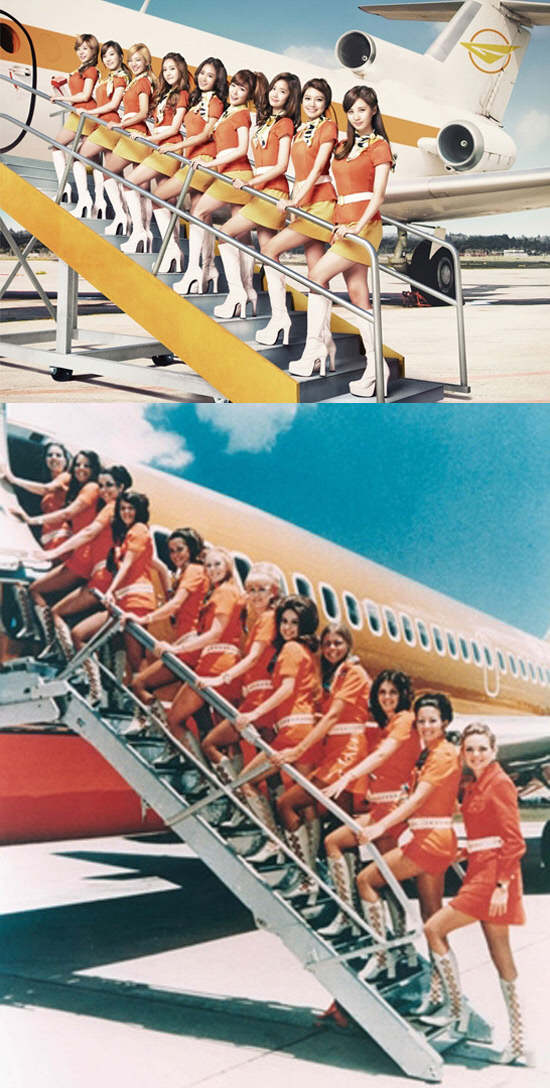 1일 공개된 소녀시대의 일본 두번째 앨범 '소녀시대2 걸즈 앤 피스' 티저 사진에는 승무원 유니폼을 입고 비행기 계단이나 날개 위에서 섹시한 매력을 발산한 멤버들의 모습이 담겼다. 그런데 이 사진은 1971년 미국 사우스 웨스트 항공사의 광고 포스터와 흡사해 논란이 야기됐다. 해당 광고에서는 승무원들이 주황색 유니폰을 입고 비행기 계단 위에서 미소짓고 있는 모습이 담겼는데, 소녀시대가 착용한 의상과 포즈, 구도 등이 비슷했던 것. 이와 함께 승무원 가방을 깔고 앉은 소녀시대의 사진은 사우스 웨스트 승무원 유니폼과 PSA 에어라인 광고 속 승무원들의 포즈를 혼합한 것이란 지적도 제기됐다.