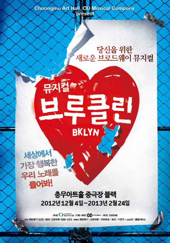 콘서트 뮤지컬 '브루클린'(프로듀서 신춘수, 연출 김태형)이 오는 12월 4일부터 내년 2월24일까지 충무아트홀 중극장 블랙에서 공연된다.