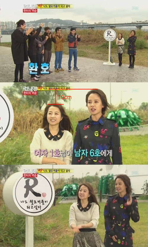 프로필 상으로 1m68의 큰 키를 소유한 송지효는 아담한 체구의 박보영 옆에 나란히 서자 무려 10cm의 상당한 키 차이를 보이며 '거인 지효'의 위엄을 드러냈다.