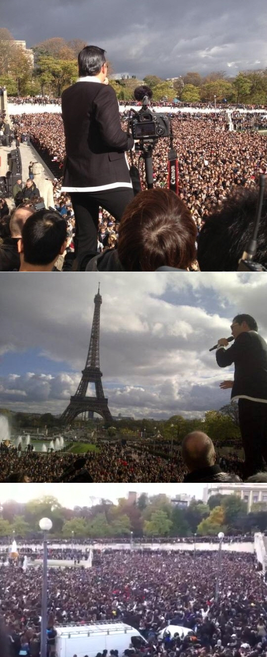 미리 자리를 잡은 수만명 시민은 싸이가 등장하자 환호를 지르며 반가워했고, 싸이의 노래에 맞춰 '떼창'과 '떼춤'을 선보였다.