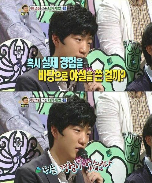 MC들은 "야설 총 집필 수는 몇 편이냐"는 물음에 "총 10편 정도 된다. 중학교 1학년 때부터 소설가가 꿈이었다. 이때 친구들의 야설을 쓰면 좋을 것 같다고 했다. 그래서 쓰기 시작했다"며 처음 시작하게 된 이유를 밝혔다.