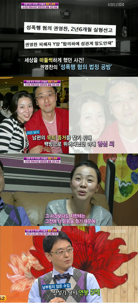 권영찬은 "2005년 당시에는 8개가 넘는 프로그램을 진행했고 사업도 잘됐다. 출연료만 했을 때 연봉이 5억 원이 넘었다. 스포츠 스타가 부럽지 않을 정도였다"고 밝혀 놀라움을 샀다.