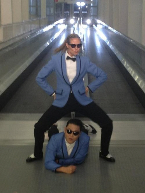 국제 가수 싸이와 세계적인 톱 모델 하이디 클룸이 '강남스타일' 뮤직비디오를 패러디했다.