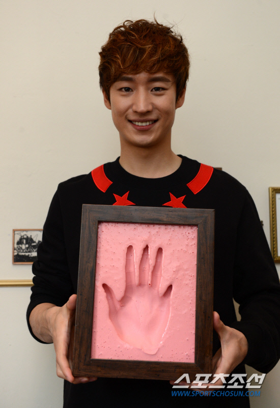 전년도 제32회 청룡영화상 남우신인상을 수상한 배우 이제훈이 23일 새영화 '나의 파파로티' 포스터 촬영 현장인 서울 청담동에서 핸드프린팅을 했다. 이제훈이 자신의 핸드프린팅을 들고 포즈를 취하고 있다. 이제훈은 25일 논산훈련소 입소를 앞두고 있다. 허상욱 기자 wook@sportschosun.com/2012.10.23/