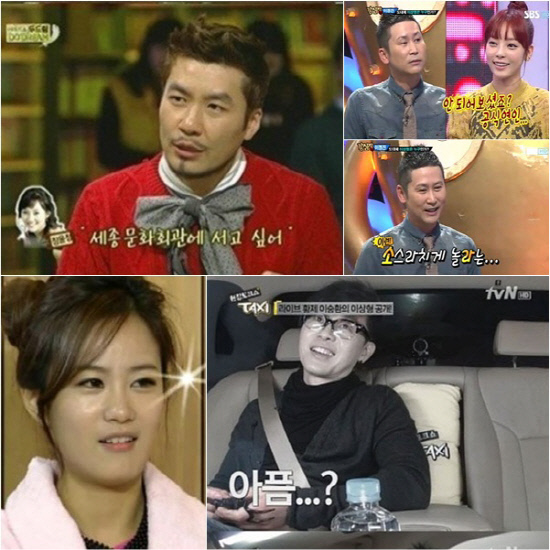 같은 날 가수 이승환은 케이블채널 tvN '현장토크쇼 택시'에 출연했다. 이날 MC 김구라와 전현무는 "이상형이 뭔가"라고 물었고 이승환은 "표독하게만 생기지 않으면 괜찮다. 예전에는 임수정같은 스타일을 좋아했다"고 답했다. 이에 김구라는 "미안하다. 오랜만에 시원하게 던지겠다. 좋아하는 스타일이 옛날 '아픔'과 좀 비슷하다"라고 말하자 이승환이 당황하며 "안비슷하다"고 말했다. 하지만 전현무도 "좋아하는 스타일이 쉽게 바뀌지 않는다"고 맞장구를 쳤다.