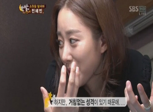 14일 방송된 SBS '한밤의 TV연예'에서 전혜빈은 '노출을 즐긴다'는 평에 대한 입장을 밝혔다. 앞서 그는 비키니 화보 공개, 노출 강도가 높은 의상 착용, '정글의 법칙2'에서 거침없이 상의를 탈의하는 장면 등이 공개되며 '노출증이 아니냐'는 의혹에 휘말린 바 있다.
